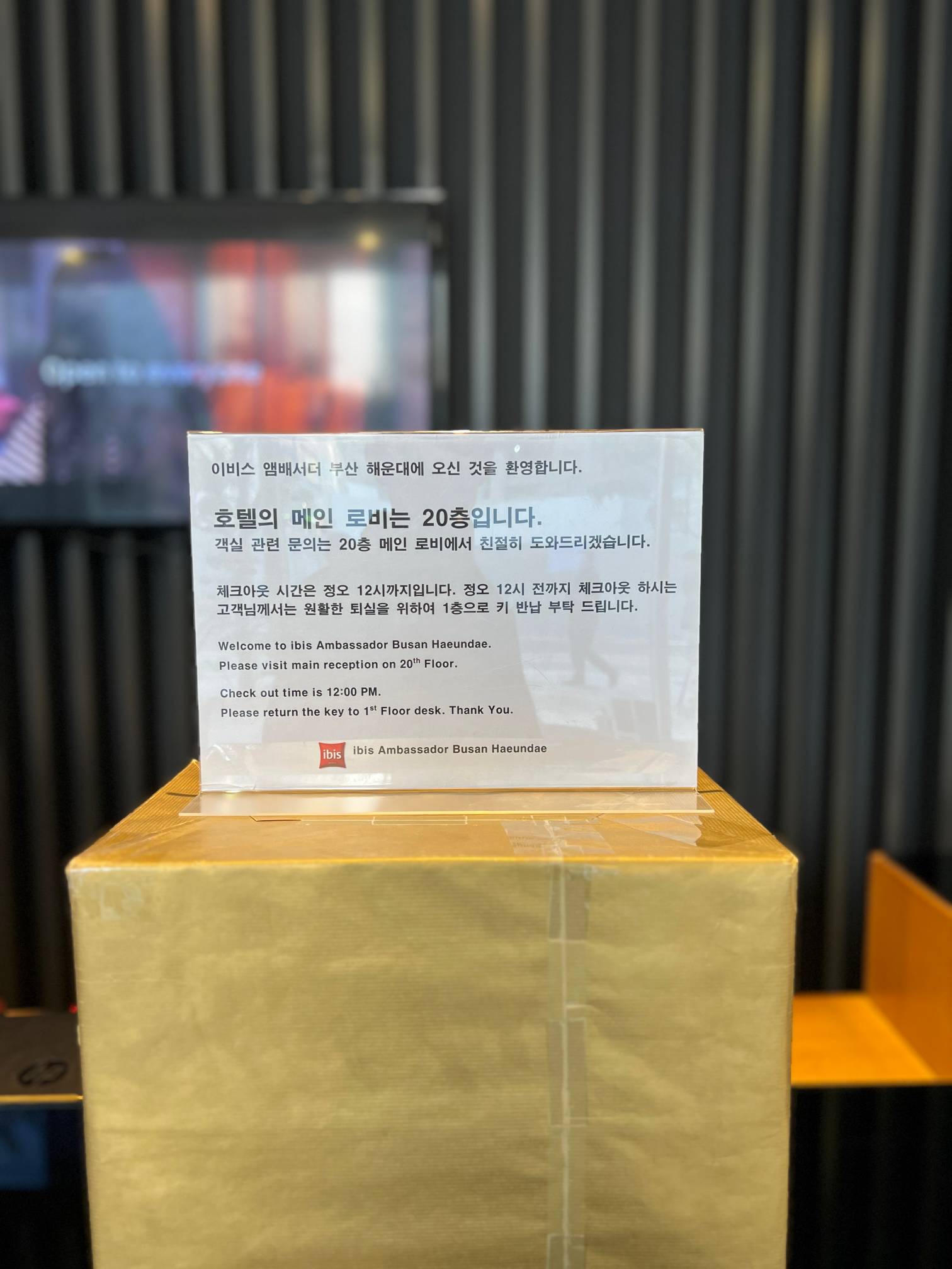 체크아웃은 1층에서 바로 할 수 있지만 체크인은 20층으로 가세요.