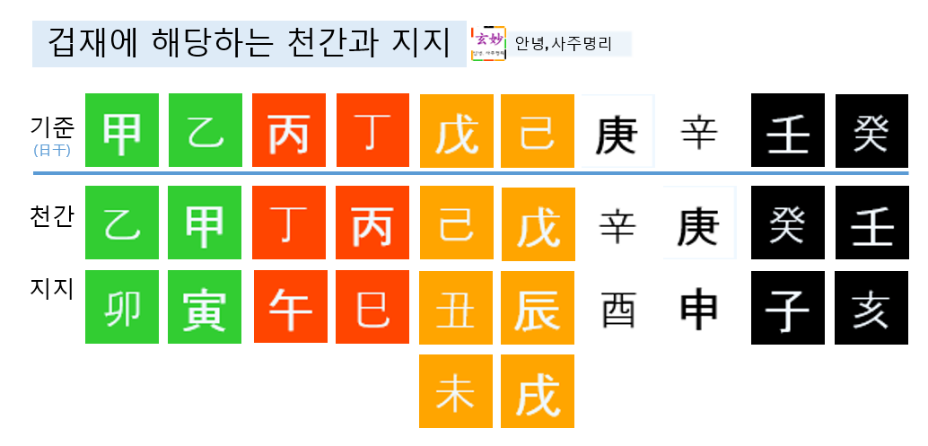 겁재의 천간 지지 표