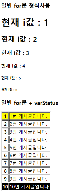 <h3> 일반 for문 + varStatus</h3>