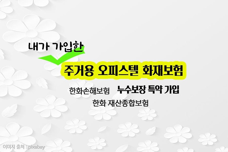 오늘은 오피스텔에서 누수가 되면 화재보험을 확인해 달라는 내용으로 안내해 드렸습니다.많은 분들이 문의하는 항목이라 간단하게 정리해서 평소 궁금해하시는 분들께 도움을 드리고자 작성했습니다.사고는 언제 어디서 발생할지 예상할 수 없어요. 그래서 미리 준비해야 하는 적은 보험료라 부담없이 준비하기에 아주 좋은 플랜이에요.많은 분들께 도움이 되었으면 좋겠습니다.