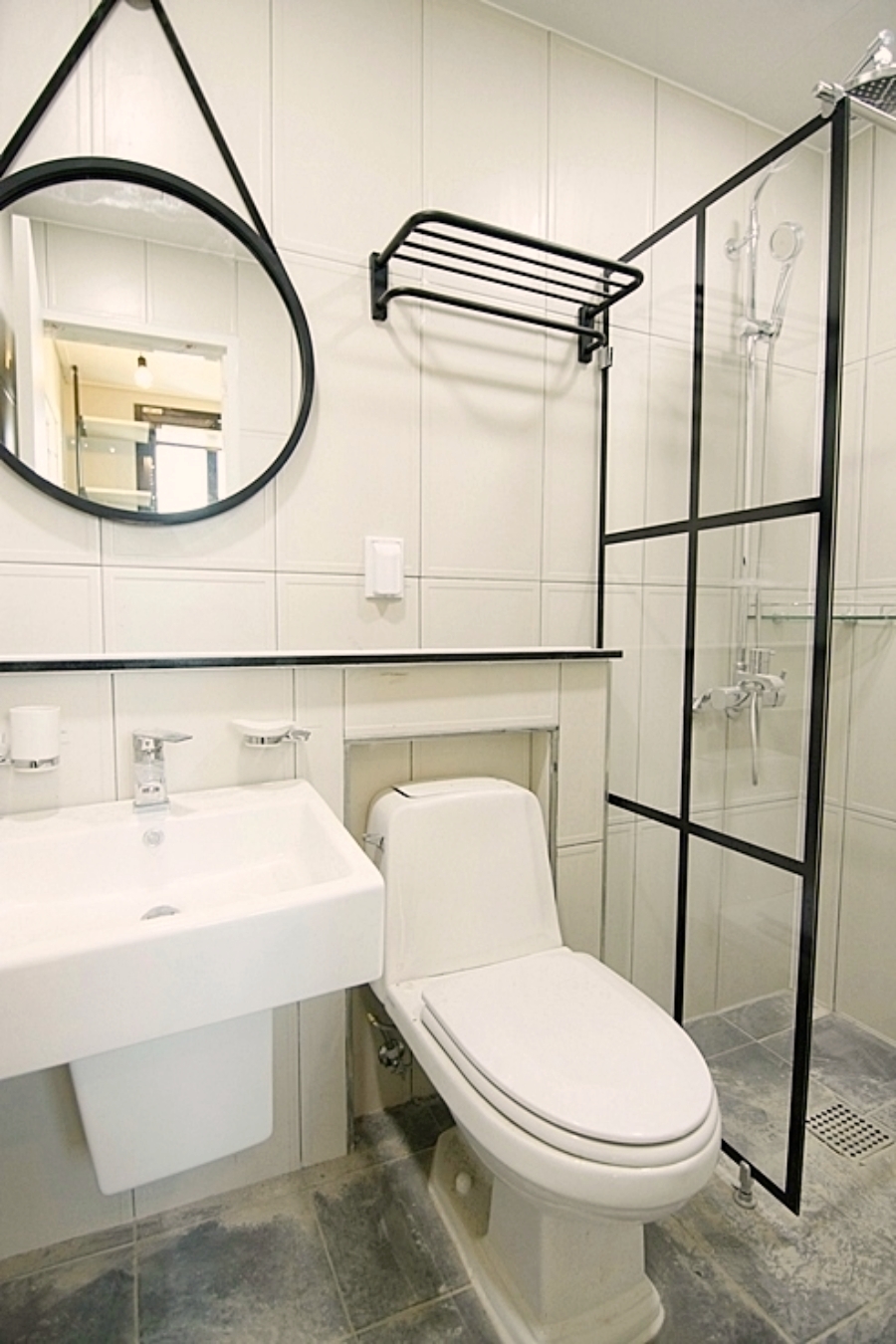 듀플렉스빌라 파주 듀플렉스빌라 상지석동 욕실 대욕장 및 대욕장 온 가족이 사용하는 대욕장으로 양옆으로 방수 칸막이가 설치되어 있습니다.
