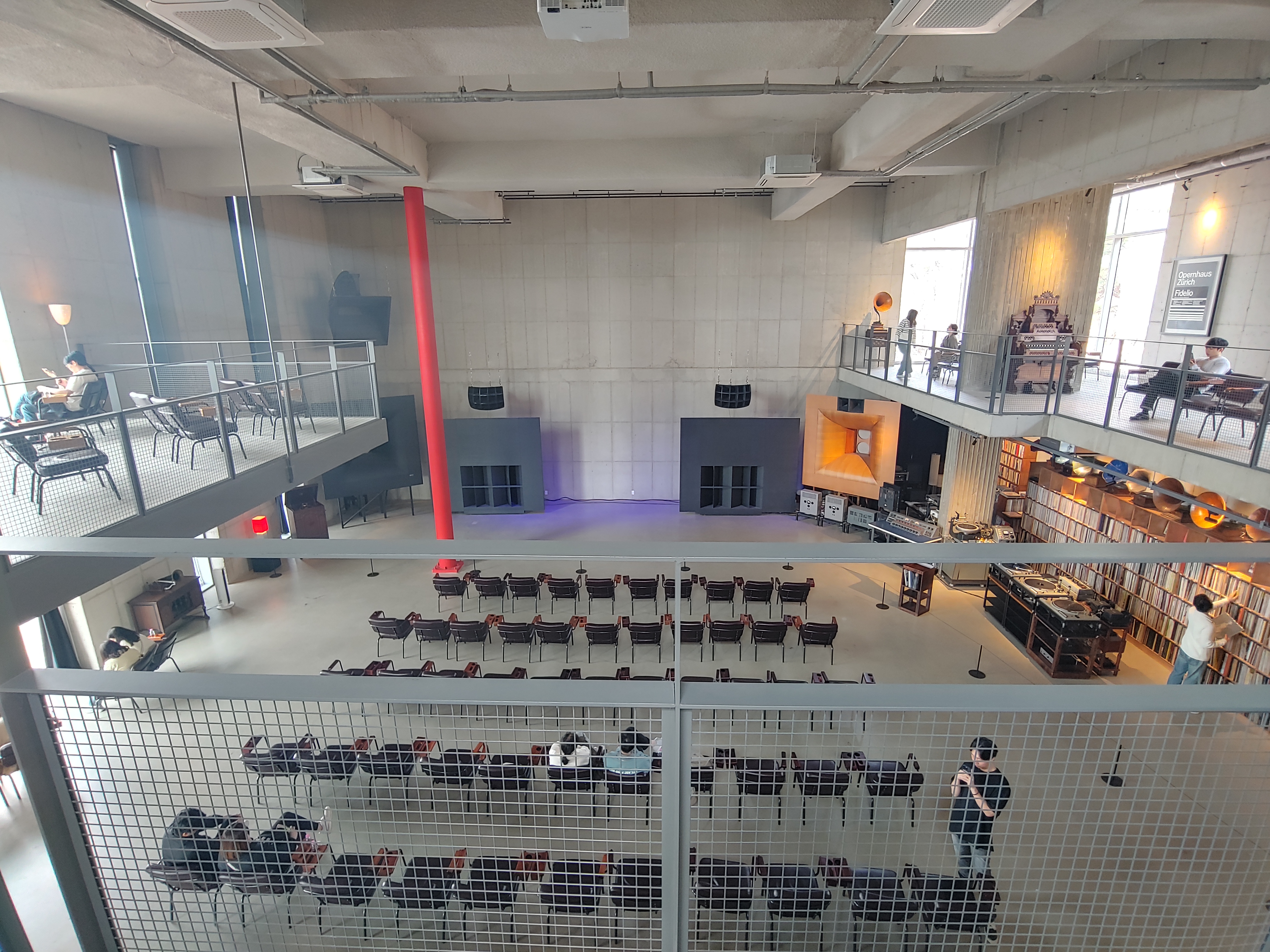 1층인 현관을 제외하고 나머지 3개 층의 내부는 모두 오픈플랜으로 처음부터 음악 감상을 위해 설계한 느낌이다.