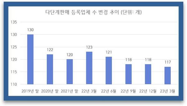 2023년 1분기 기준 다단계 기업 수는 117개로 신규 등록 2개, 폐업 3개다.